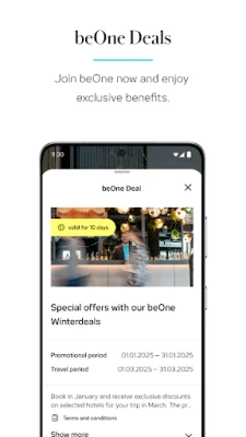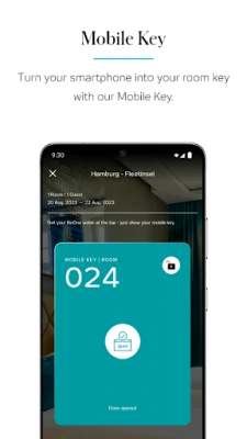 always save 10% on your booking, discover the latest beOne deals, find the last available rooms, manage reservations even faster, cancel free of charge until 6 pm* and carry out the Quick Check-in process directly in the app and save time at check-in. With the Mobile Key functionality, you can also use the app as a room key for many of our hotels.