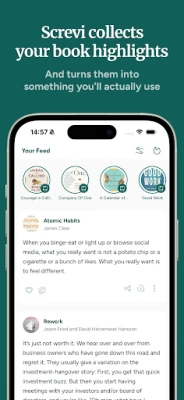 Screvi turns your highlights into an engaging, scrollable feed so you can easily revisit and internalize your best ideas. No more forgetting key insights after finishing a book or article.