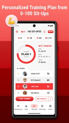 Embark on a journey guided by a meticulously crafted training plan that adapts to your fitness level and aspirations. You can opt for one of three intensity levels, progressing from 0 to 100 Sit-Ups.