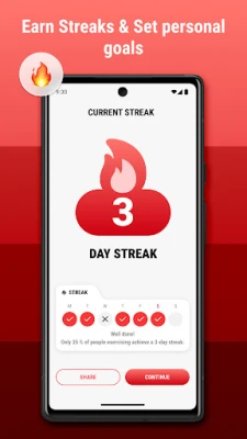 - Streaks - tracks the number of days in a row you’ve completed a workout (works in combination with the 100 Push-Ups app)
