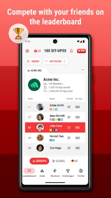 - Create groups and add your co-workers, families, etc., to the leaderboard