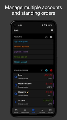 Use the statistics to keep track of your monthly income and spendings and discover opportunities for savings. Manage your finances in different accounts and categories.