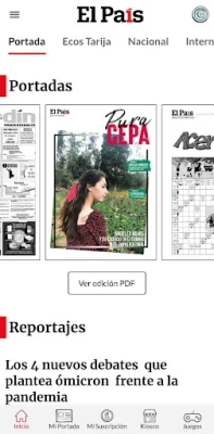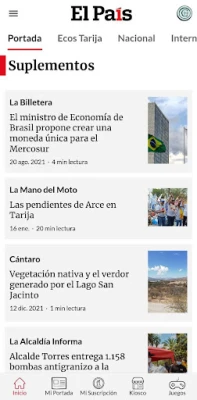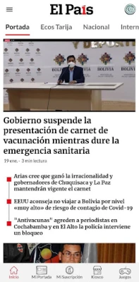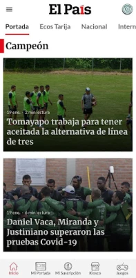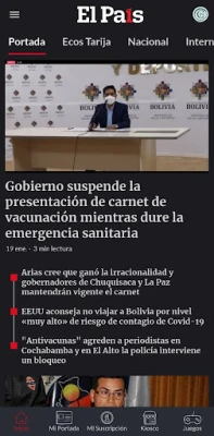Descarga El País Bolivia e inicia una sesión con tu cuenta de Google, Apple o Facebook. Navega por los módulos de Inicio, Mi Portada, Mi País, Kiosco Digital y Juegos.