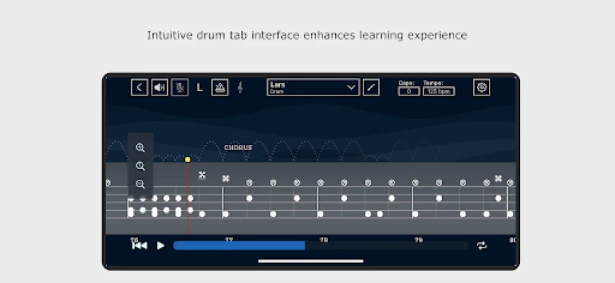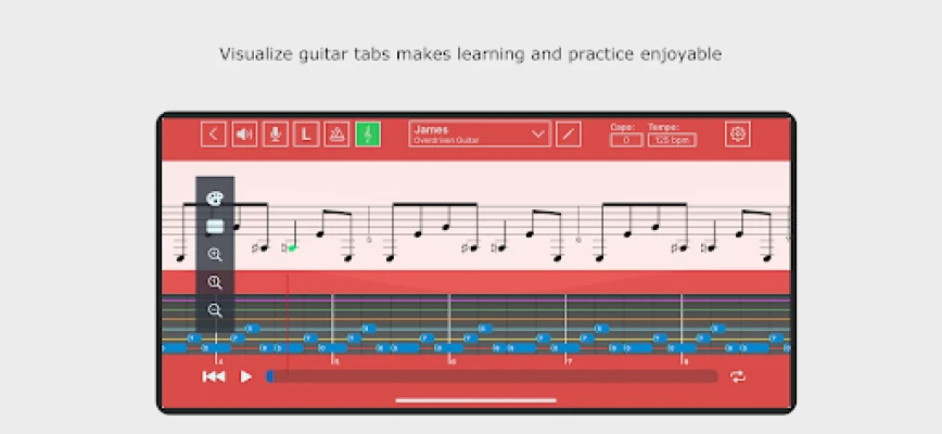 - Tab Visualization: Easily view guitar and drum tabs with an interactive and clear interface, making practice and performance seamless.