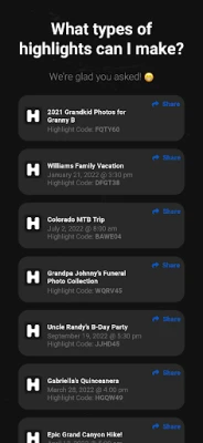 Use the Highlight Reel Camera to capture your highlight moments Share albums with your favorite moments Preserve memories just like they were yesterday Turn every moment into a highlight Start saving and sharing your life’s highlight moments with a monthly Highlight Reel subscription at $2.99. Life is fleeting, but its highlights are forever!