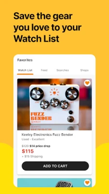 • Save searches (like "Fender electric guitars” or "Korg synths" filtered by Condition, Year, Price and more) to get notified when specific gear you want becomes available.