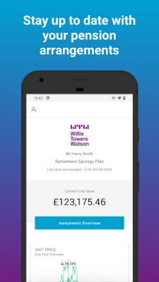 The new Willis Towers Watson ‘Track My Pension’ app makes it easy for you to keep up to date with your pension arrangements. If you have a defined contribution pension that is administered by Willis Towers Watson and your employer has signed up to receive the application, then you can now use your mobile device to view and track your pension.This app is non-transactional and displays key elements of your pension funds. You can login using either fingerprint, face unlock or create a 6-digit pin.